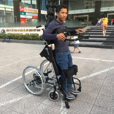 - Đây là dòng Xe lăn điện đứng có thiết kế độc đáo. Nó cho phép một người thường bị bó hẹp trong tư thế ngồi trên xe lăn truyền thống có thể đứng lên và duỗi chân ra một cách dễ dàng và an toàn, bất cứ lúc nào, ở bất cứ nơi đâu